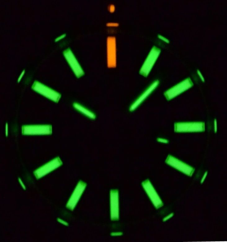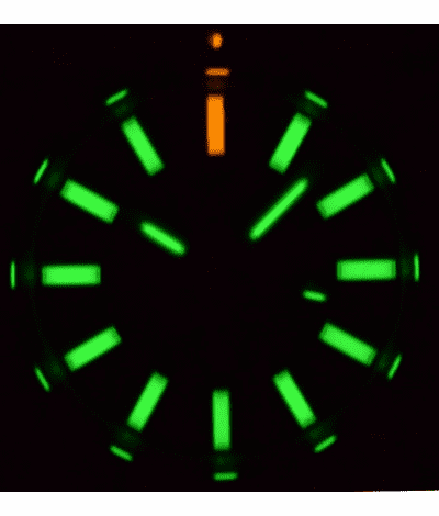 Tritium Tubes :12 Oclock -1 Orange Tube ,1-11 Hour Markers Green tubes