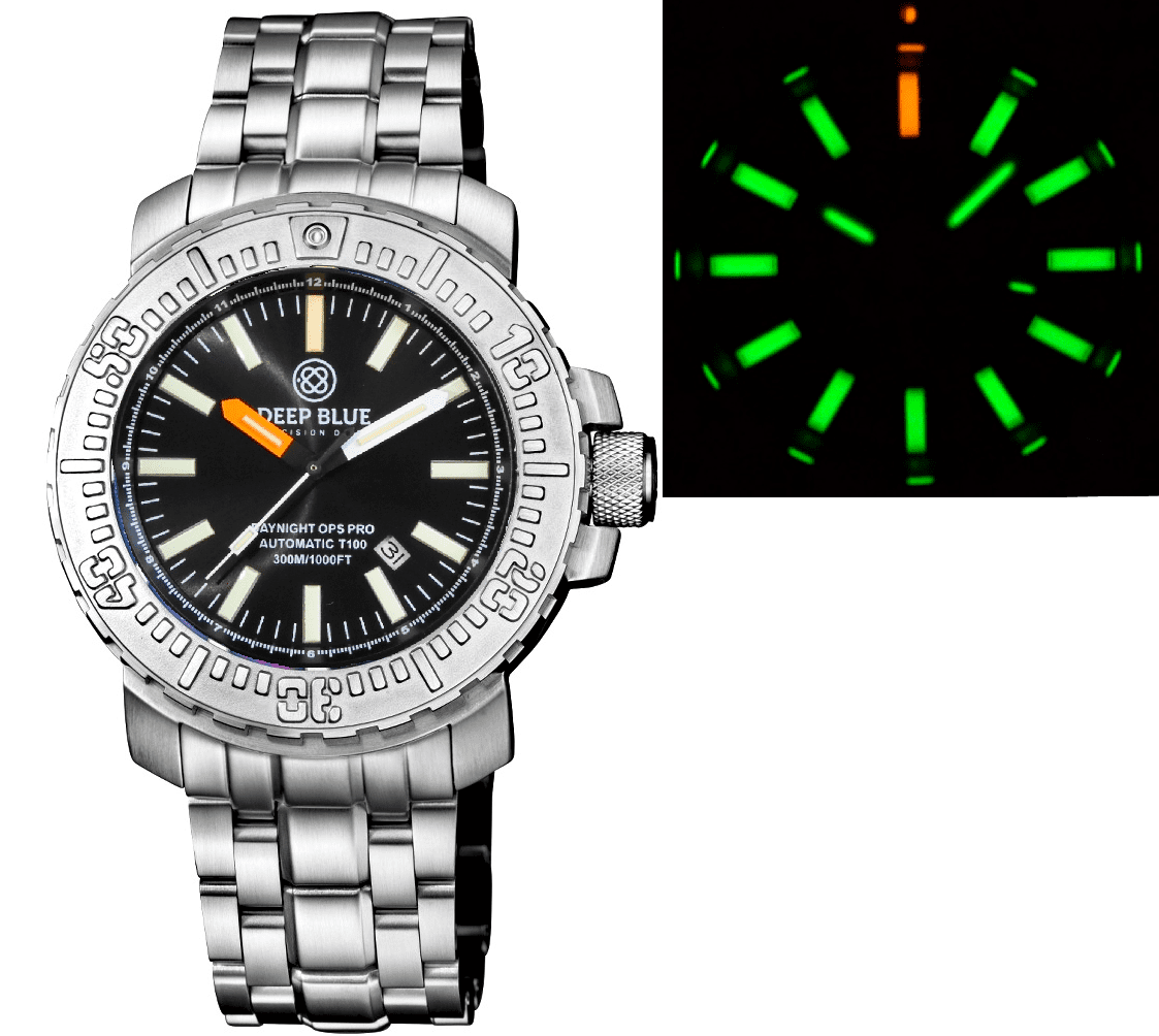 DAYNIGHT OPS PRO TRITIUM TUBES T-100 AUTOMATIC 46MM STAINLESS BEZEL - BRACELET COLLECTION
