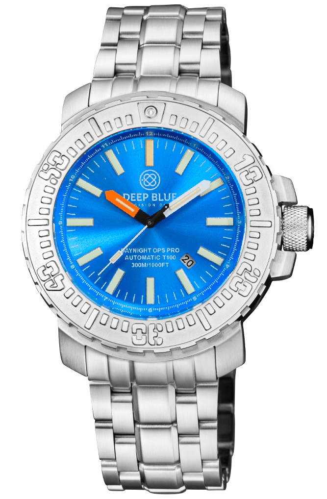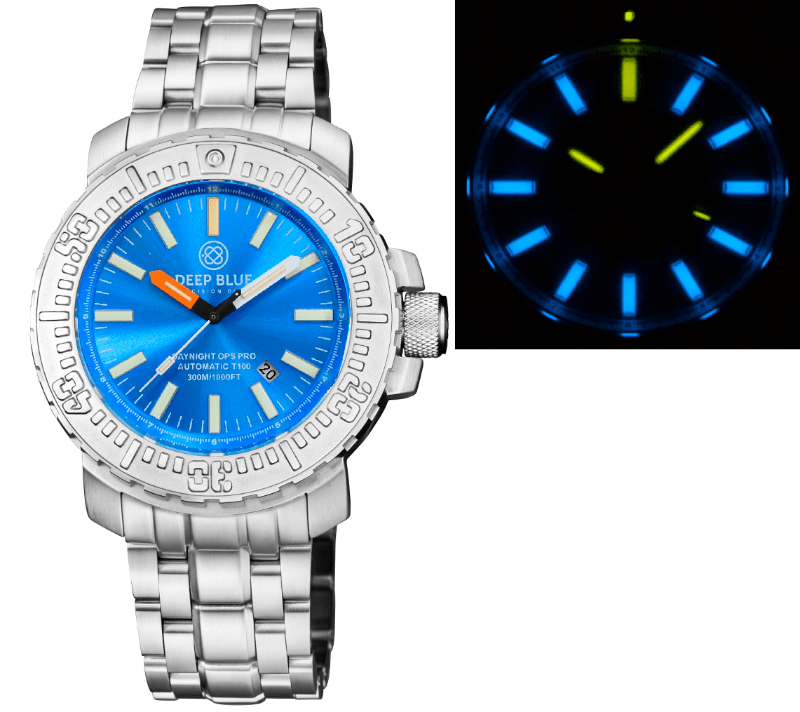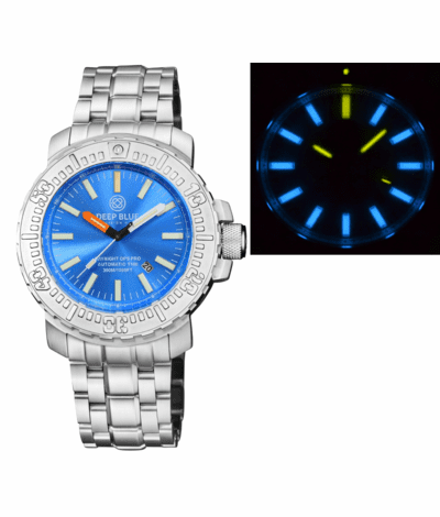 Home | DIVE WATCHES | DAYNIGHT OPS PRO TRITIUM TUBES T-100 AUTOMATIC 46MM STAINLESS BEZEL - BRACELET | " INTRODUCTORY PRICING " DAYNIGHT OPS PRO TRITIUM TUBES AUTOMATIC 46MM STAINLESS STEEL BEZEL LIGHT BLUE DIAL - BRACELET - BLUE/YELLOW TRITIUM TUBES