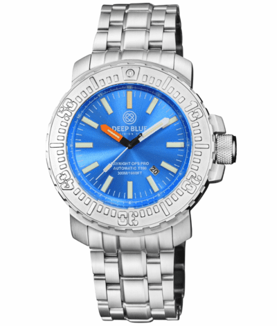 " INTRODUCTORY PRICING " DAYNIGHT OPS PRO TRITIUM TUBES AUTOMATIC 46MM STAINLESS STEEL BEZEL LIGHT BLUE DIAL - BRACELET - BLUE/YELLOW TRITIUM TUBES
