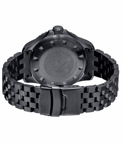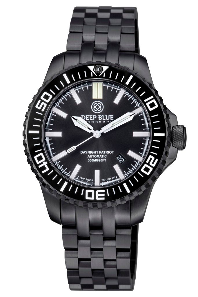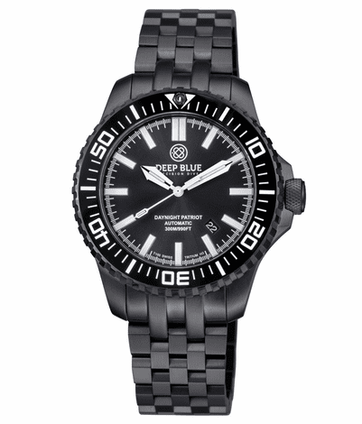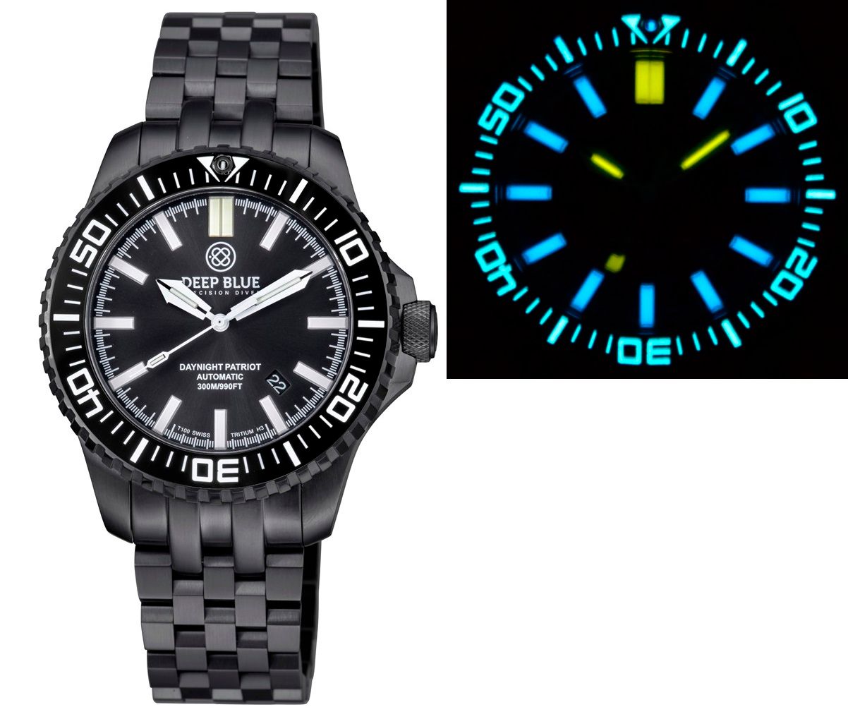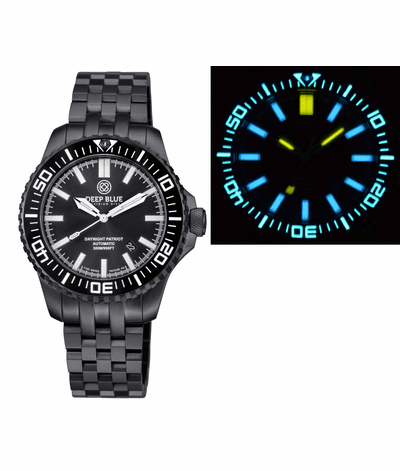 Home | DIVE WATCHES | DAYNIGHT PATRIOT T-100 TRITIUM FLAT TUBES AUTOMATIC | DAYNIGHT PATRIOT PVD BLACK CASE - BLACK CERAMIC BEZEL - BLACK DIAL - BLUE/YELLOW TUBES ENGINEER BRACELET