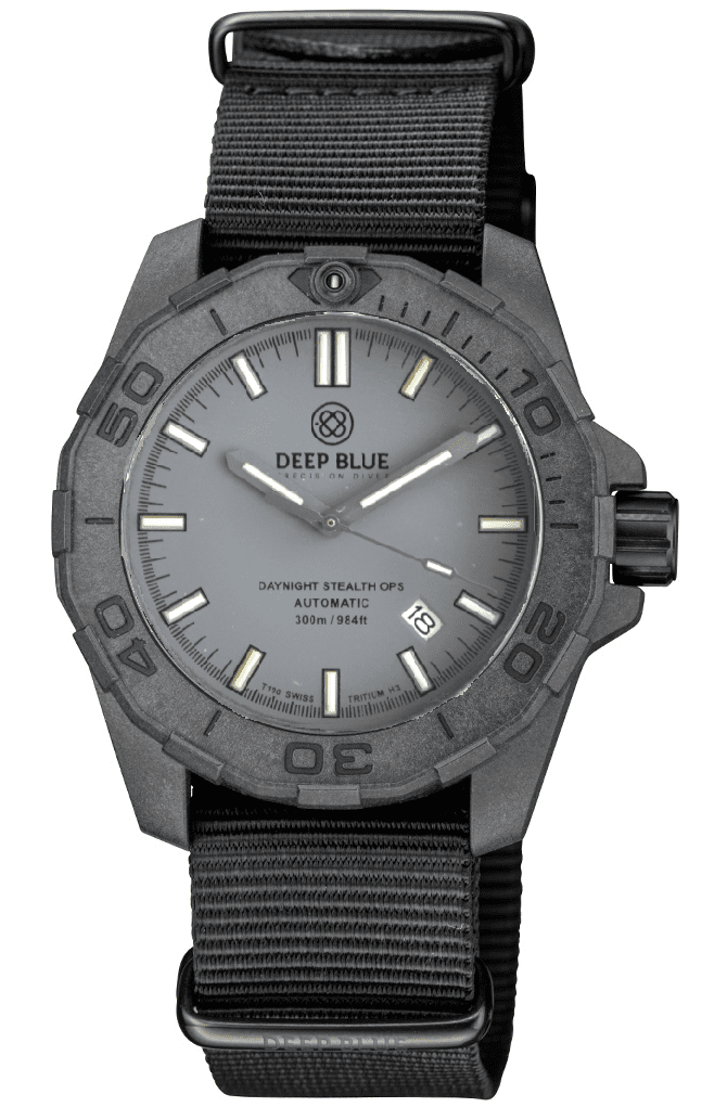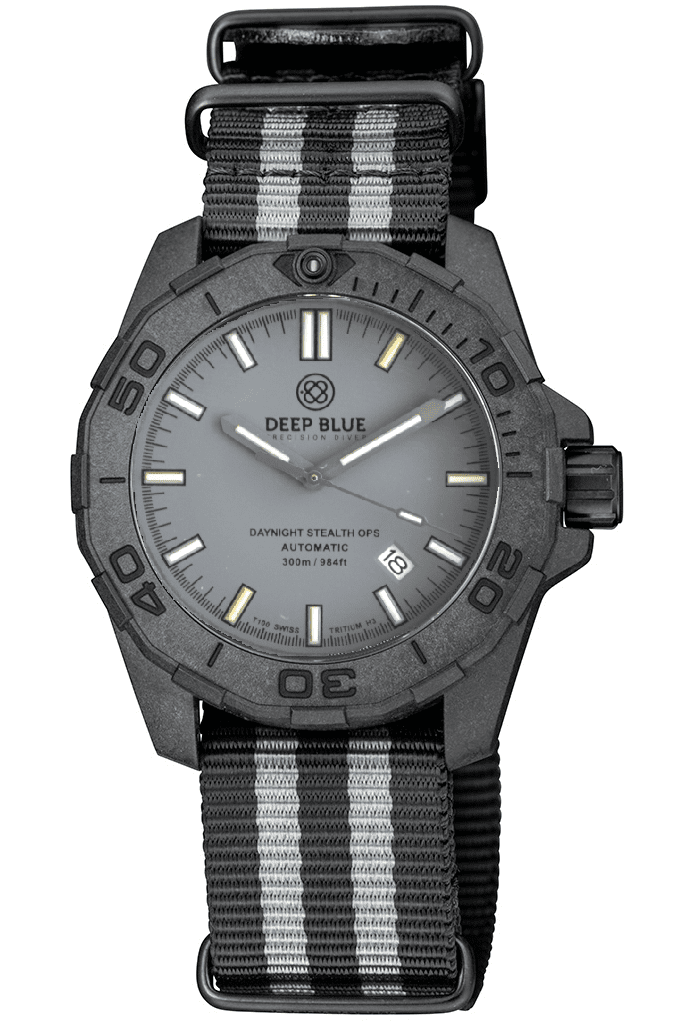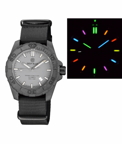 "HOLIDAY PRICING" DAYNIGHT STEALTH OPS CARBON CASE GREY DIAL 6 COLORS CYLINDRICAL TRITIUM TUBES AUTOMATIC WATCH SCREW DOWN CROWN