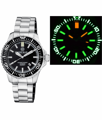 Home | DIVE WATCHES | DAYNIGHT PATRIOT T-100 TRITIUM FLAT TUBES AUTOMATIC | SOLD OUT | DAYNIGHT PATRIOT BLACK CERAMIC BEZEL - BLACK DIAL - GREEN/ORANGE TUBES BRACELET