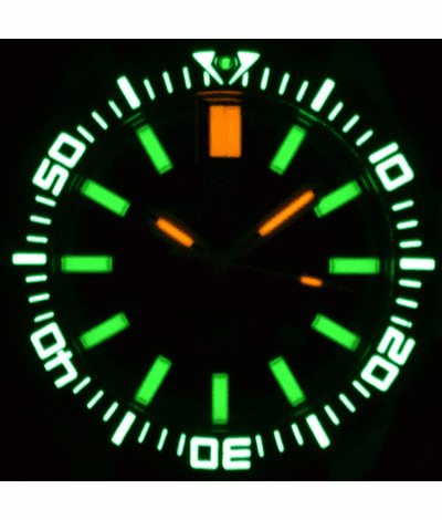 Tritium Tubes :12 Oclock -2 Orange Tubes ,1-11 Hour Markers , Bezel Pip - Green Tubes