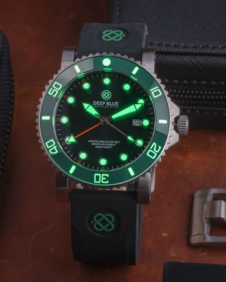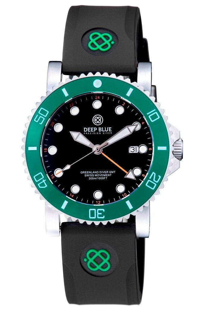 Home | DIVE WATCHES | GREEN LAND 44MM DIVER GMT 2 TIME ZONE QUARTZ - GREEN CERAMIC BEZEL - DIVER | GREENLAND DIVER GMT - GREEN CERAMIC BEZEL - BLACK DIAL - STRAP