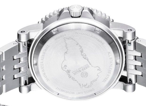 Etched caseback with "GREENLAND" Map
