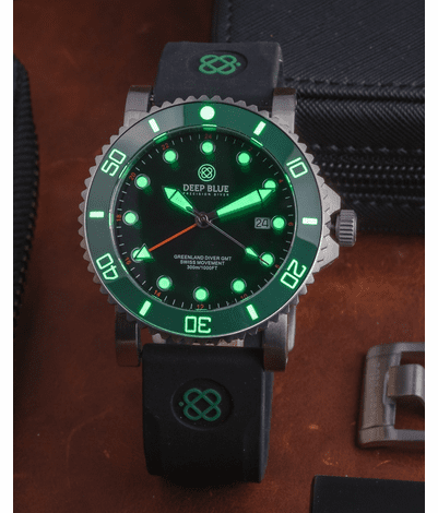 GREENLAND DIVER GMT - GREEN CERAMIC BEZEL - BLACK DIAL - STRAP