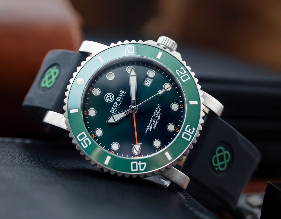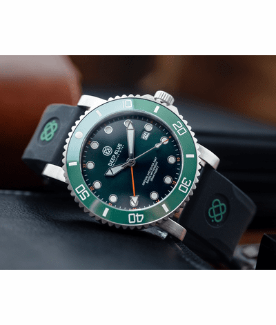 GREEN LAND 44MM DIVER GMT 2 TIME ZONE QUARTZ - GREEN CERAMIC BEZEL - DIVER COLLECTION