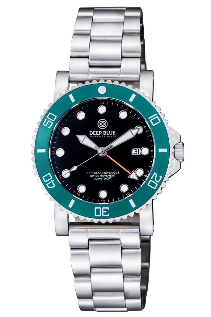Home | DIVE WATCHES | GREEN LAND 44MM DIVER GMT 2 TIME ZONE QUARTZ - GREEN CERAMIC BEZEL - DIVER | GREENLAND DIVER GMT - GREEN CERAMIC BEZEL - BLACK DIAL - BRACELET
