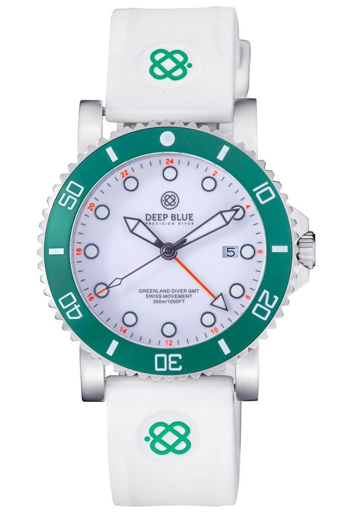Home | DIVE WATCHES | GREEN LAND 44MM DIVER GMT 2 TIME ZONE QUARTZ - GREEN CERAMIC BEZEL - DIVER | GREENLAND DIVER GMT - GREEN CERAMIC BEZEL - WHITE DIAL - STRAP