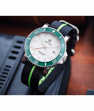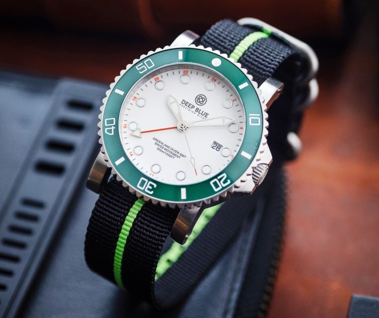 GREENLAND DIVER GMT - GREEN CERAMIC BEZEL - WHITE DIAL - STRAP