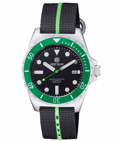 Home | DIVE WATCHES | MASTER 1000 44MM RETRO AUTO AUTOMATIC DIVER | MASTER 1000 RETRO - GREEN BEZEL - BLACK DIAL - GREEN SECOND HAND - STRAP
