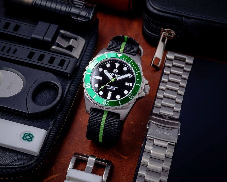 MASTER 1000 RETRO - GREEN BEZEL - BLACK DIAL - GREEN SECOND HAND - STRAP