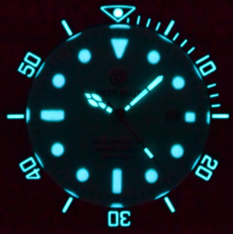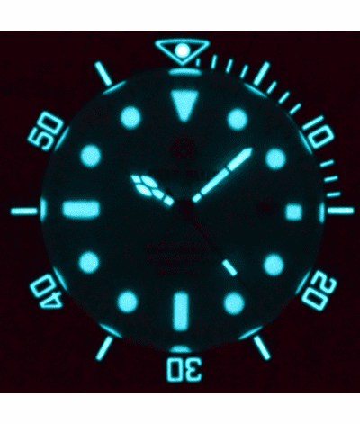 Superluminova Hour Markers, Hands and Bezel Pip