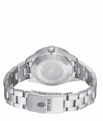Screw Down crown and Caseback, Caseback Etched with Deep Blue Diver Logo