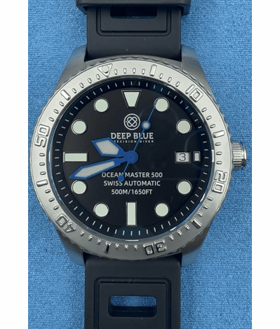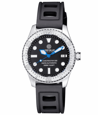Home | DIVE WATCHES | OCEAN MASTER 500 40MM SWISS AUTOMATIC | OCEAN MASTER 500 40MM SWISS AUTOMATIC ROUND HOUR MARKER BLUE HANDS STRAP