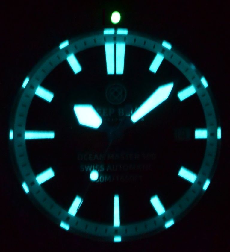 Blue Superluminova Hour Markers, Hands and Bezel Pip (Inner Ring Does Not Lume)