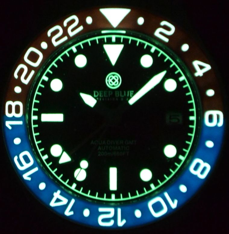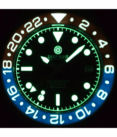 AQUA DIVER GMT AUTOMATIC RED/BLUE BEZEL BLACK DIAL BRACELET LUME SAPPHIRE BEZEL