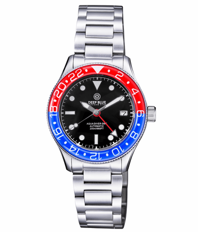 AQUA DIVER GMT AUTOMATIC RED/BLUE BEZEL BLACK DIAL BRACELET