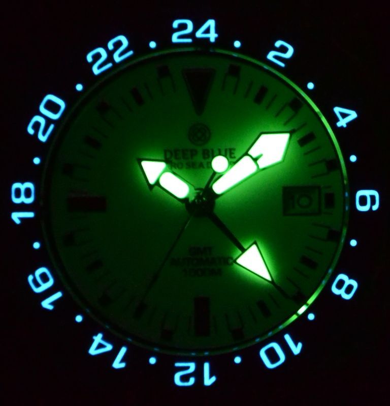 SAPPHIRE crystal, Superluminous BLUE filled hands and hour indices