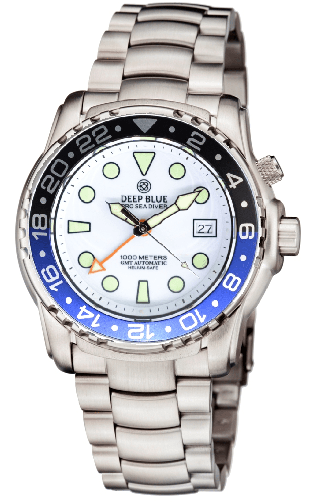 PRO SEA DIVER 1000M GMT AUTOMATIC BLACK/BLUE BEZEL WHITE DIAL BRACELET