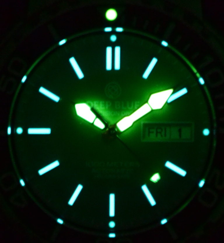 Applied Indices - Hour markers Blue Superluminova, Hands - Green Superluminova