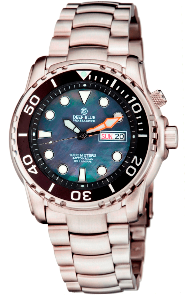 PRO SEA DIVER 1000M AUTOMATIC BLACK CERAMIC BEZEL - PLATINUM / BLACK MOTHER OF PEARL DIAL BRACELET